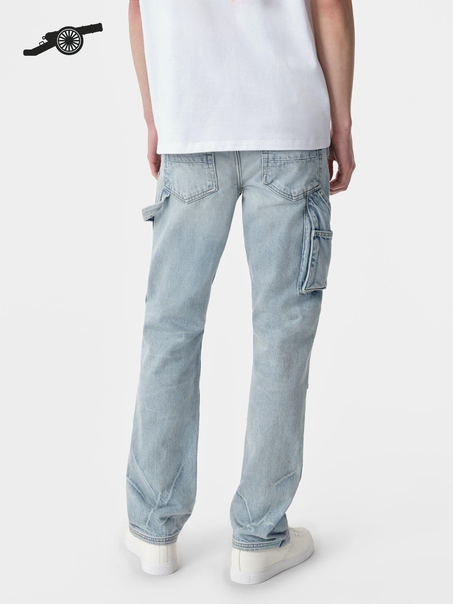 Atlas is RYDER’s cleanest utility silhouette — a light-washed, structured jean with cosmic calm. Reinforced panelling and subtle workwear cues give it quiet power, built for everyday orbit.