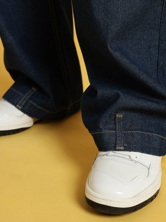 The Rayaa® X Classic Wide-Leg Jeans offer timeless style with a relaxed wide-leg fit, crafted from non-stretch 100% cotton dark blue denim. Designed for Indian silhouettes, they ensure durability and comfort.