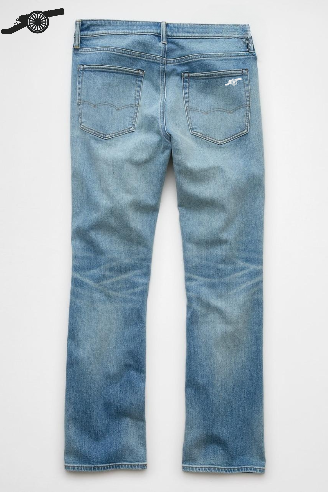 11.5 oz denim Light blue with subtle fading Slim straight-leg fit Zip fly with silver hardware Durable stitching Classic five-pocket styling Crafted in India